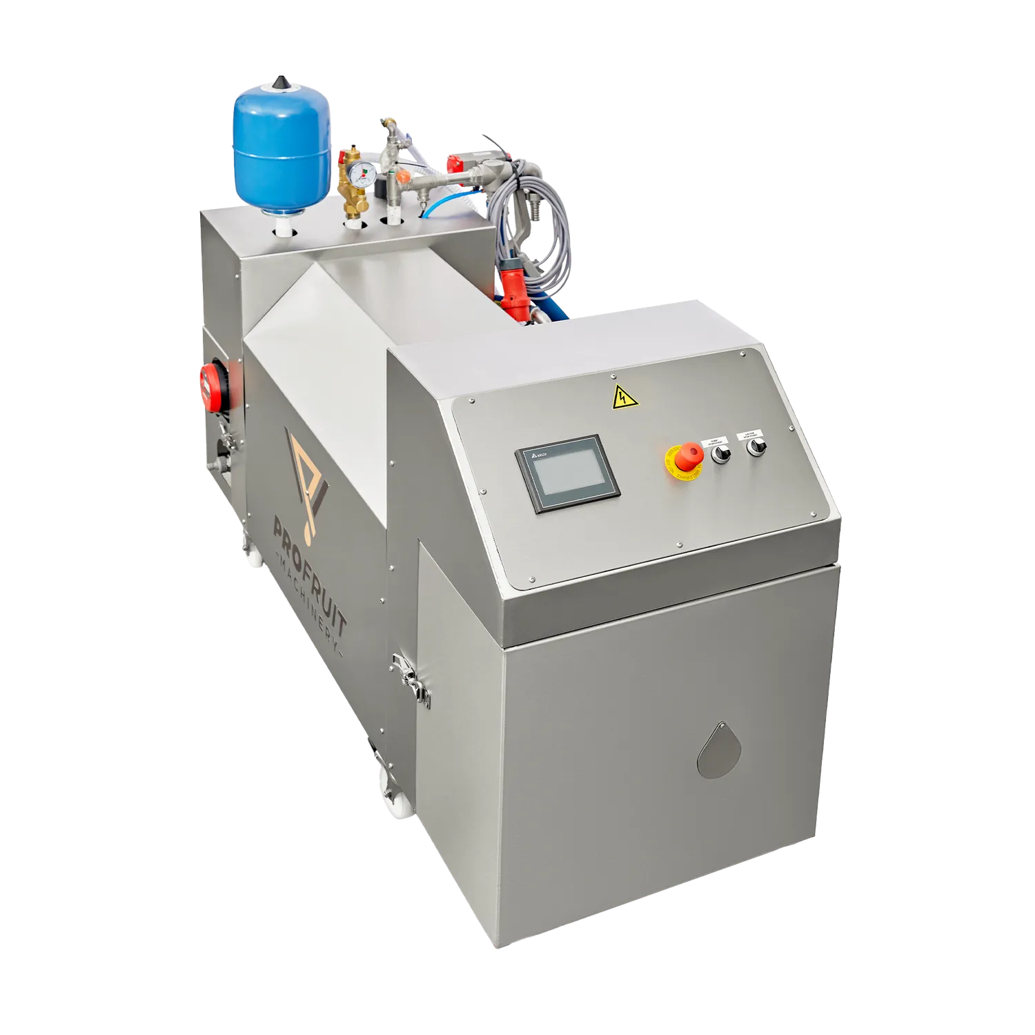 Diesel/kaasu Pastörointilaitteet HEAT 500 ja 1000 Profruitilta ovat tehokkaita pastörointilaitteita. Laitteita käytetään mehun pastörointiin ja lämpökäsittelyyn ennen kuin juoma valutetaan pakkauksiin. Syöttölämpötilaa ohjataan automaattisesti ja se on helppo asettaa digitaalinäytöltä.