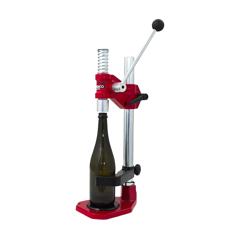 Corona-kapselointilaite on ammattimainen ja luotettava penkkikapselointilaite. Tämä tukevasta teräksestä ja valuraudasta valmistettu korkki on rakennettu kestämään ja antamaan luotettavaa käyttöä vuodesta toiseen. Korkki on portaattomasti säädettävissä korkeussuunnassa, joten se on helppo sovittaa erityyppisiin pulloihin. Mukana on kaksi erilaista korkkipäätä, jotka sopivat sekä 26 että 29 mm:n kruunukorkkeihin.