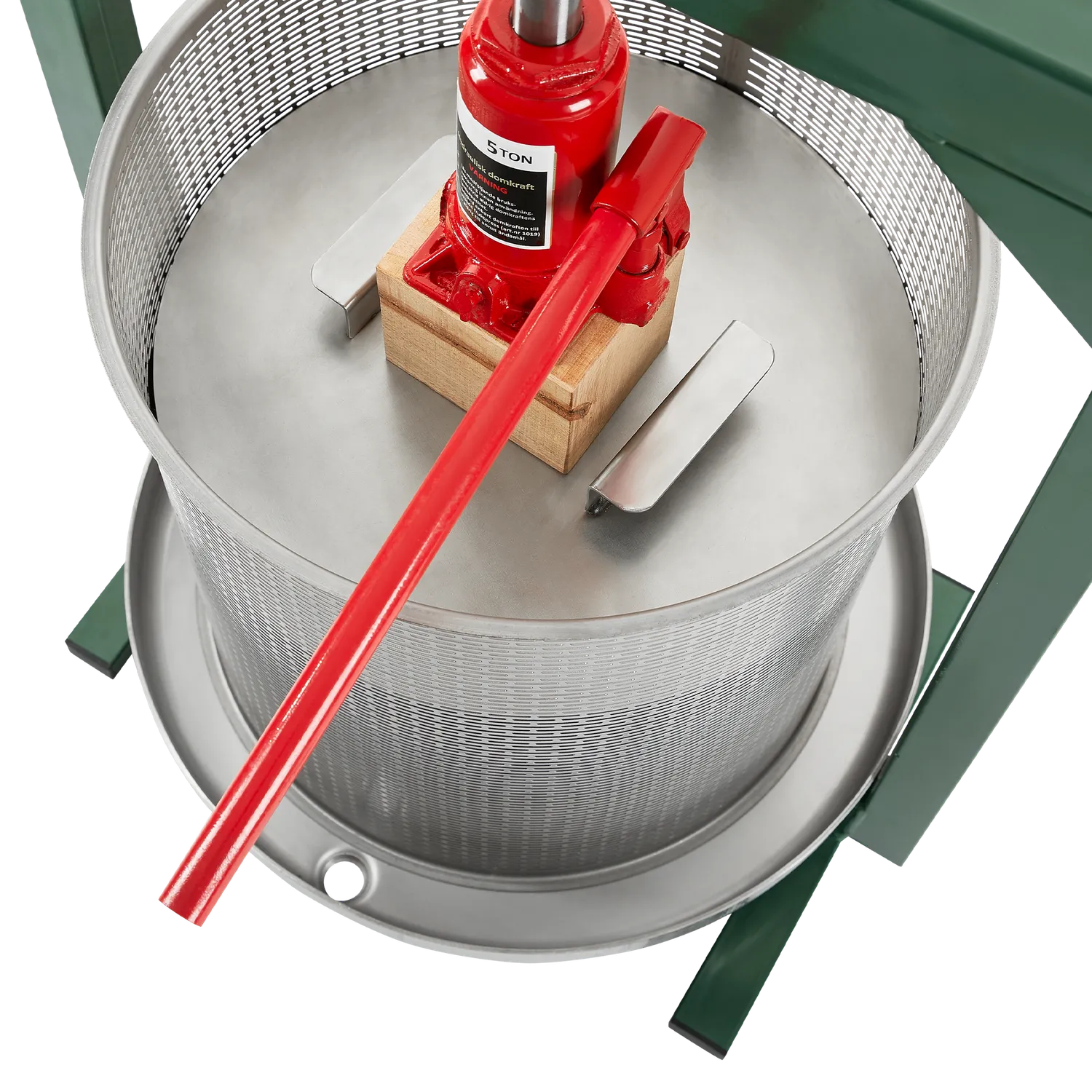Den hydrauliska domkraften har en tryckkraft på 5 ton gör det möjligt att snabbt får stora mängder äppelmust, cider eller juice.