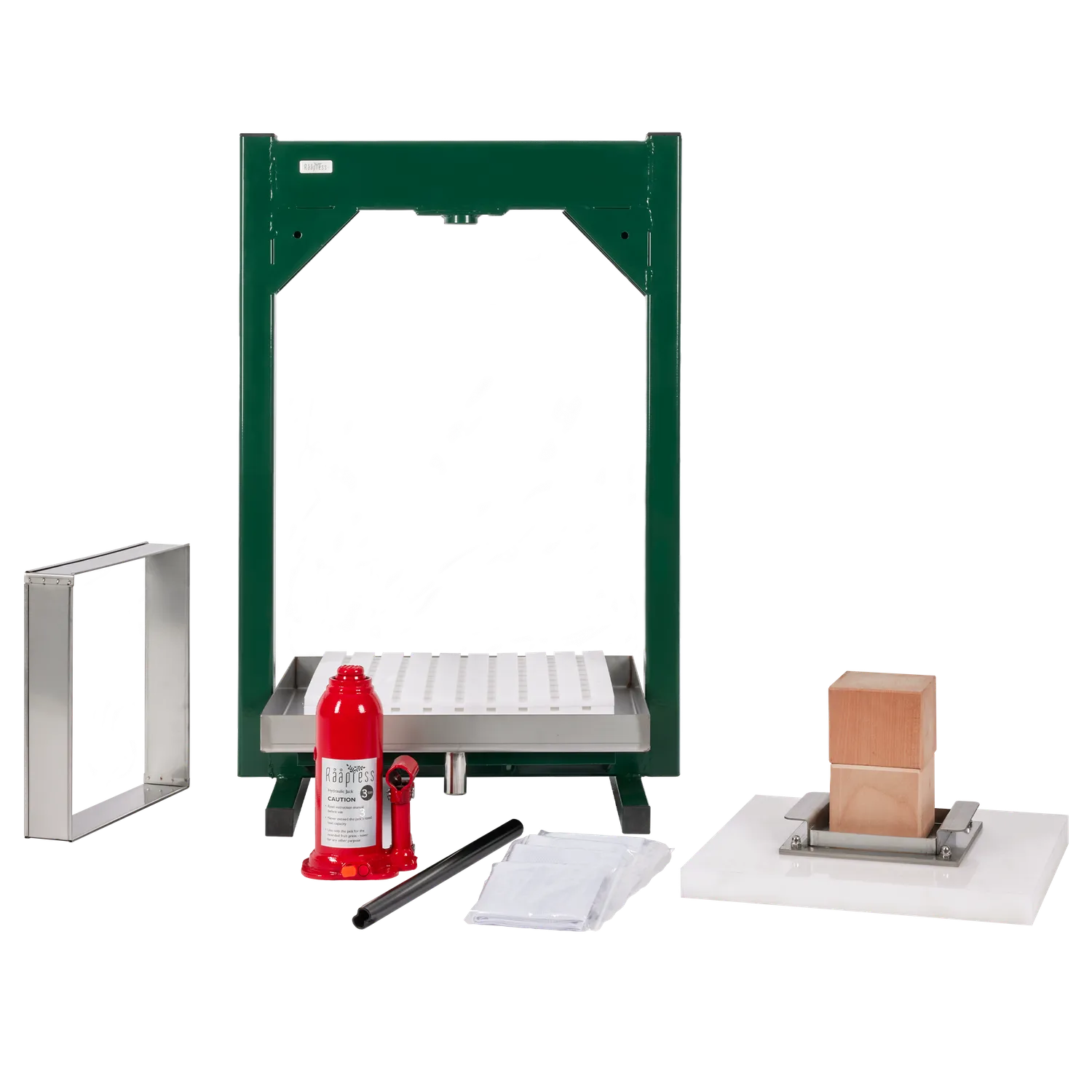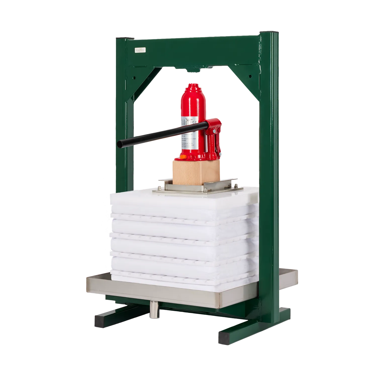 Hydraulisk Packpress 22L är en kompakt och effektiv fruktpress för dig som vill göra egen äppelmust, cider eller juice i mindre skala med högt utbyte. Med plats för cirka 22 liter fruktkross per pressning, passar den utmärkt för villaträdgårdar med några fruktträd.