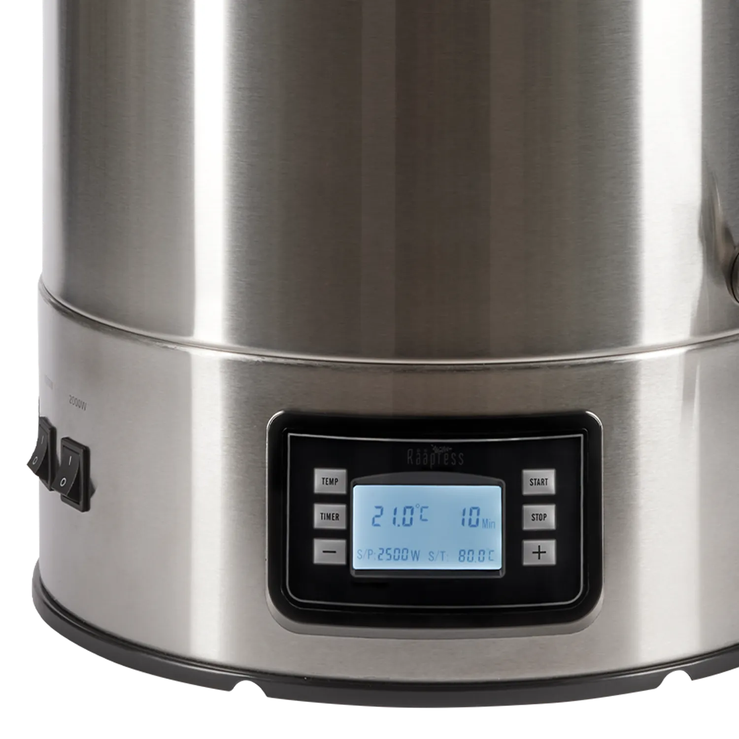 Pastör 35L 2500W är ett pastöriseringskärl med inbyggt värmeelement tillsammans med temperatur- och tidkontroll. Pastörens helautomatiska styrning gör det mycket enkelt att pastörisera sin egen äppelmust eller annan juicedryck. Pastöriseringsmaskinen har en användarvänlig kontrollpanel med LCD-display där du enkelt ställer in önskad tid och temperatur på pastöriseringen.
