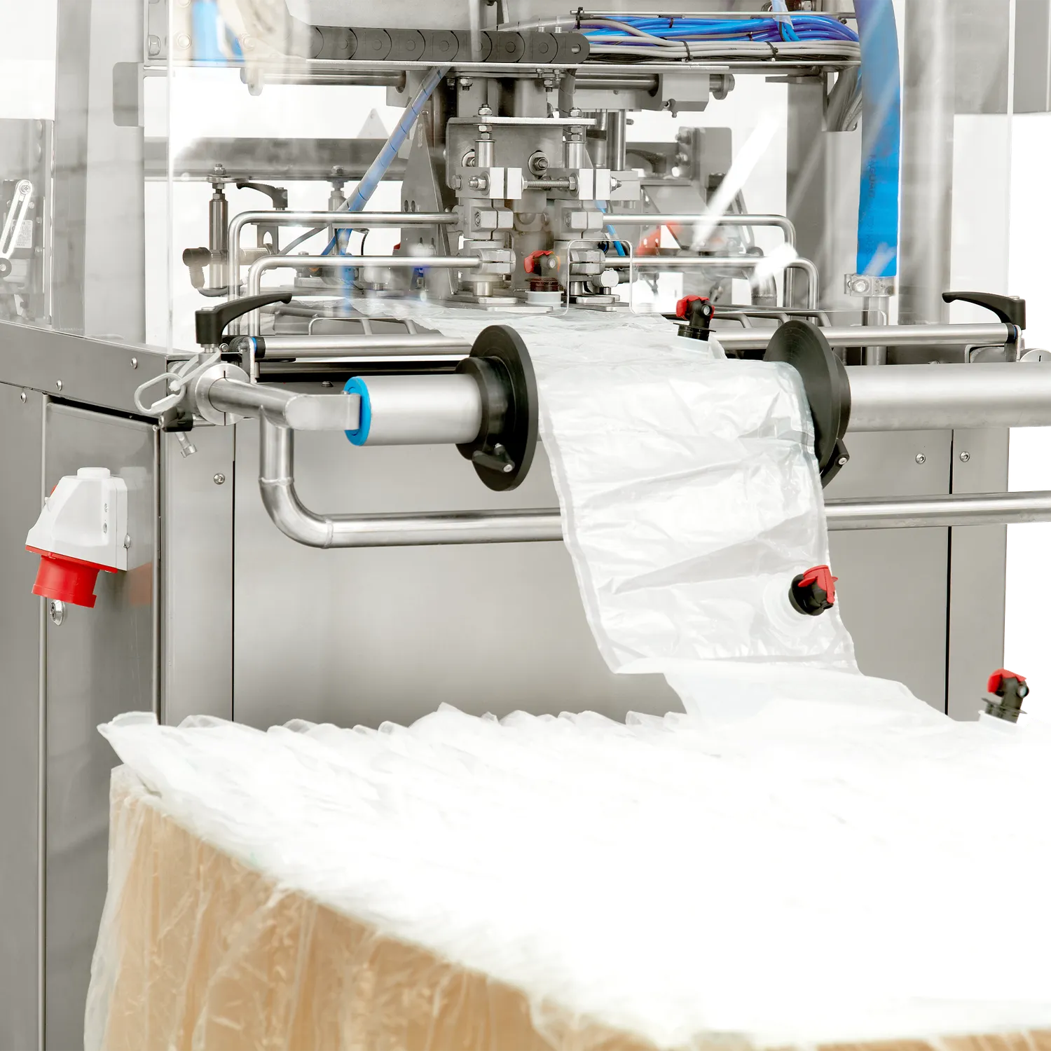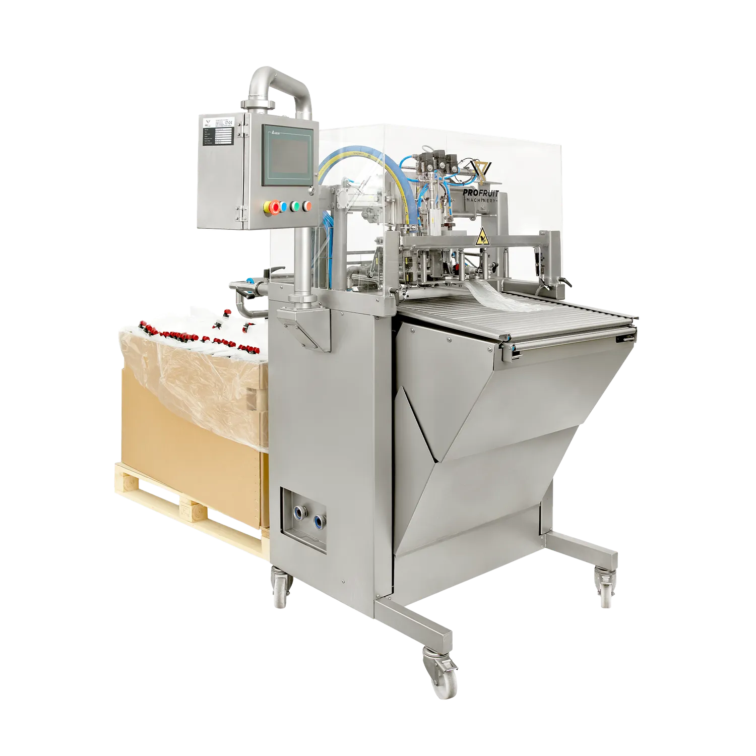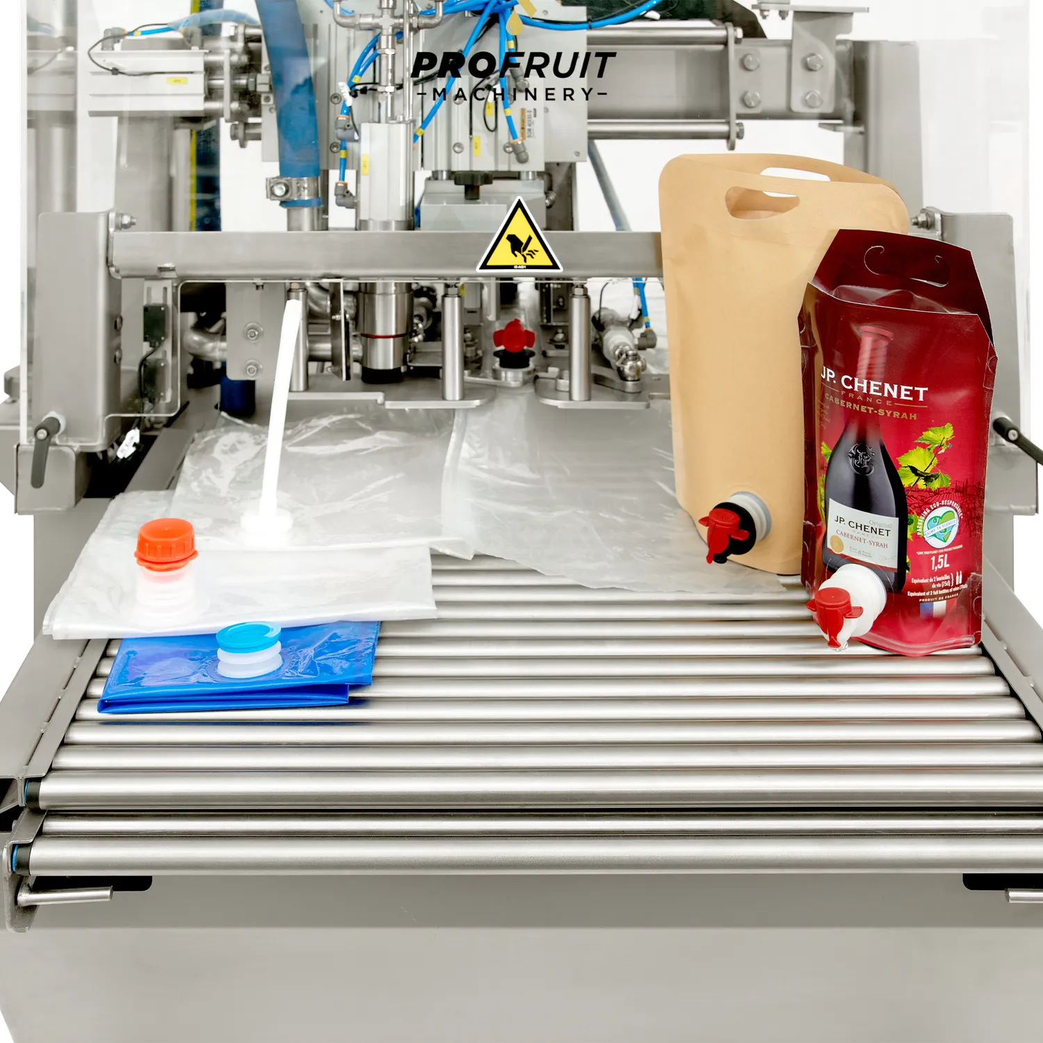 BIB fyllare Maxiflow är en helautomatisk och effektiv bag-in-box fyllare som är anpassad för att köra med sammanlänkade bag-in-box påsar (bag-in-web). När den första påsen har monterats i hållaren tar maskinen bort locket/tappkranen på påsen, fyller med äpplemust, vin eller annan produkt och sätter sedan tillbaka tappkranen. Påsen släpps från hållaren och nästa påse åker in för fyllning. Operatören av BIB fyllaren behöver endast riva av och plocka bort påsen när den är fylld. Denna effektiva arbetsgång gör att maskinen har en hög kapacitet på upp till 2000 liter per timme. BIB fyllare Maxiflow kan även fylla separata Bag in Box- eller Ståpåsar, för att göra det sätter du in en påse i fyllaren och trycker på START-knappen, maskinen tar sedan automatiskt bort kranen, suger ut luften ur påsen, fyller den med vätska och stänger påsen.
