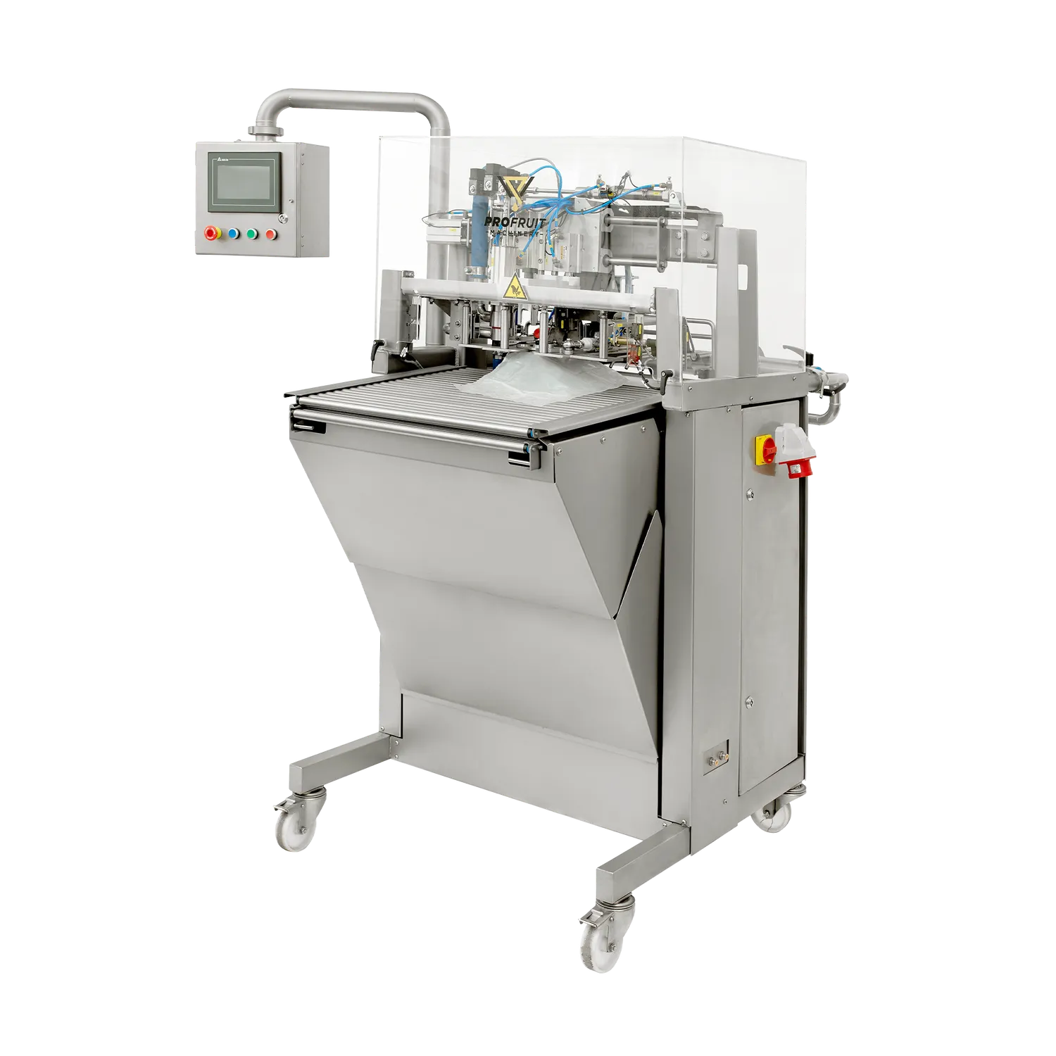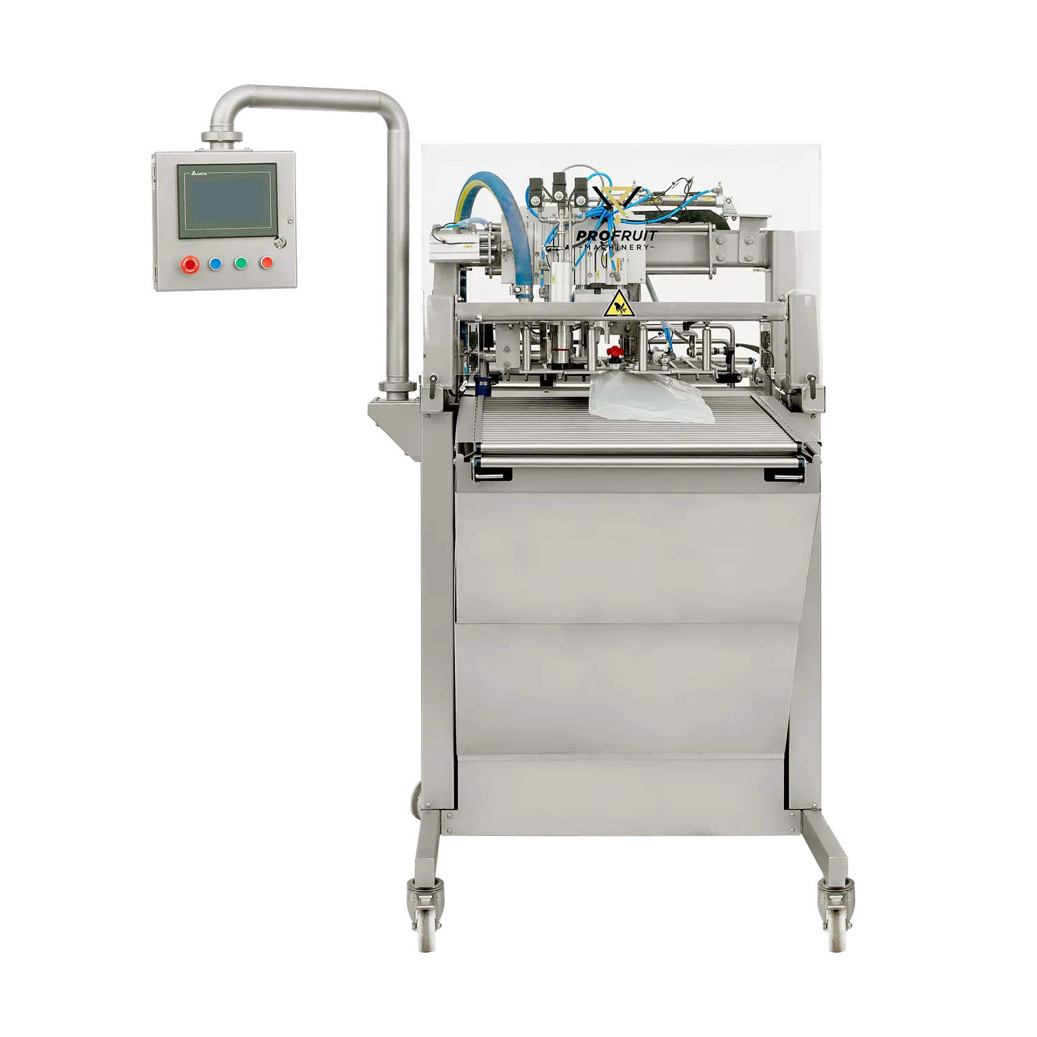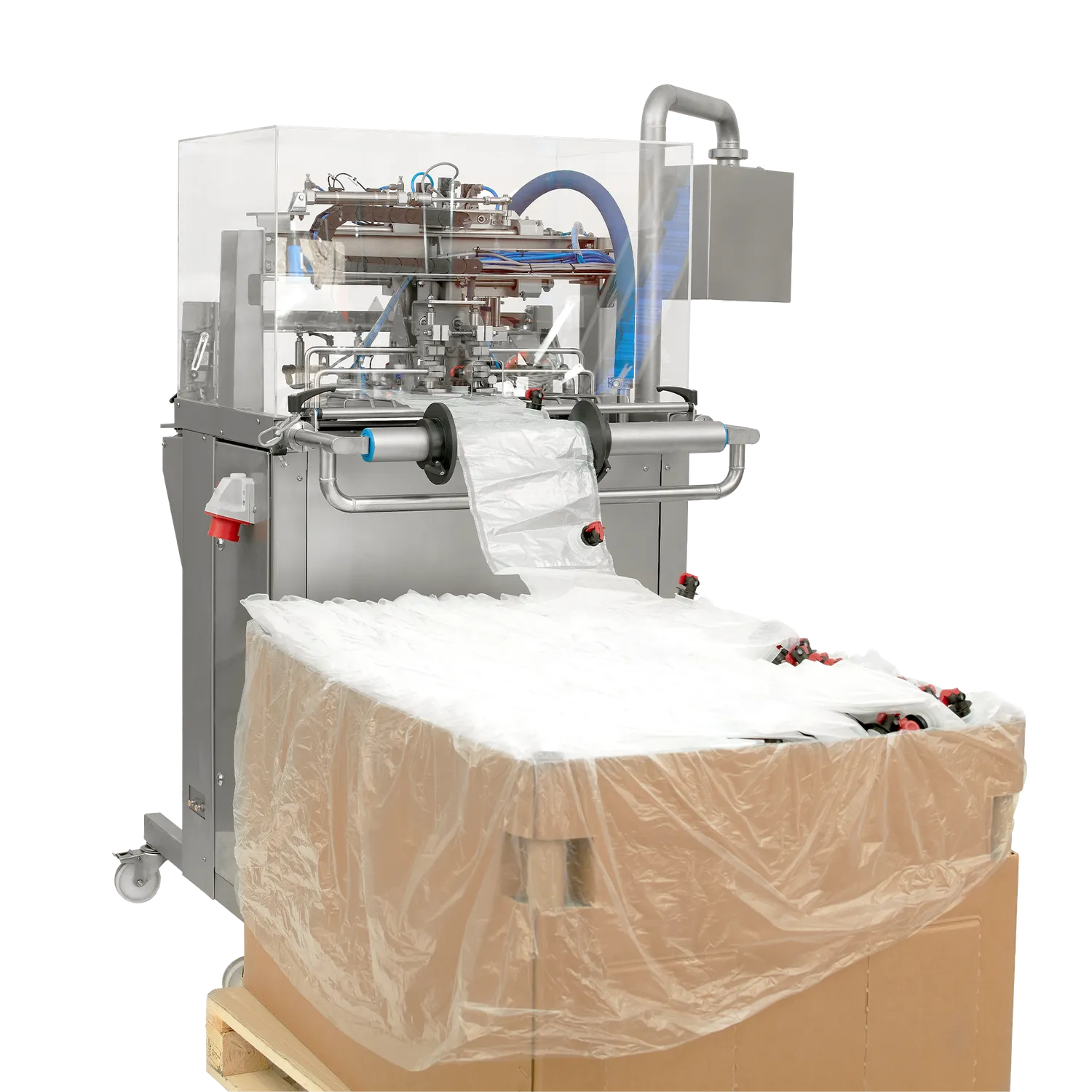 BIB fyllare Maxiflow är en helautomatisk och effektiv bag-in-box fyllare som är anpassad för att köra med sammanlänkade bag-in-box påsar (bag-in-web). När den första påsen har monterats i hållaren tar maskinen bort locket/tappkranen på påsen, fyller med äpplemust, vin eller annan produkt och sätter sedan tillbaka tappkranen. Påsen släpps från hållaren och nästa påse åker in för fyllning. Operatören av BIB fyllaren behöver endast riva av och plocka bort påsen när den är fylld. Denna effektiva arbetsgång gör att maskinen har en hög kapacitet på upp till 2000 liter per timme. BIB fyllare Maxiflow kan även fylla separata Bag in Box- eller Ståpåsar, för att göra det sätter du in en påse i fyllaren och trycker på START-knappen, maskinen tar sedan automatiskt bort kranen, suger ut luften ur påsen, fyller den med vätska och stänger påsen.