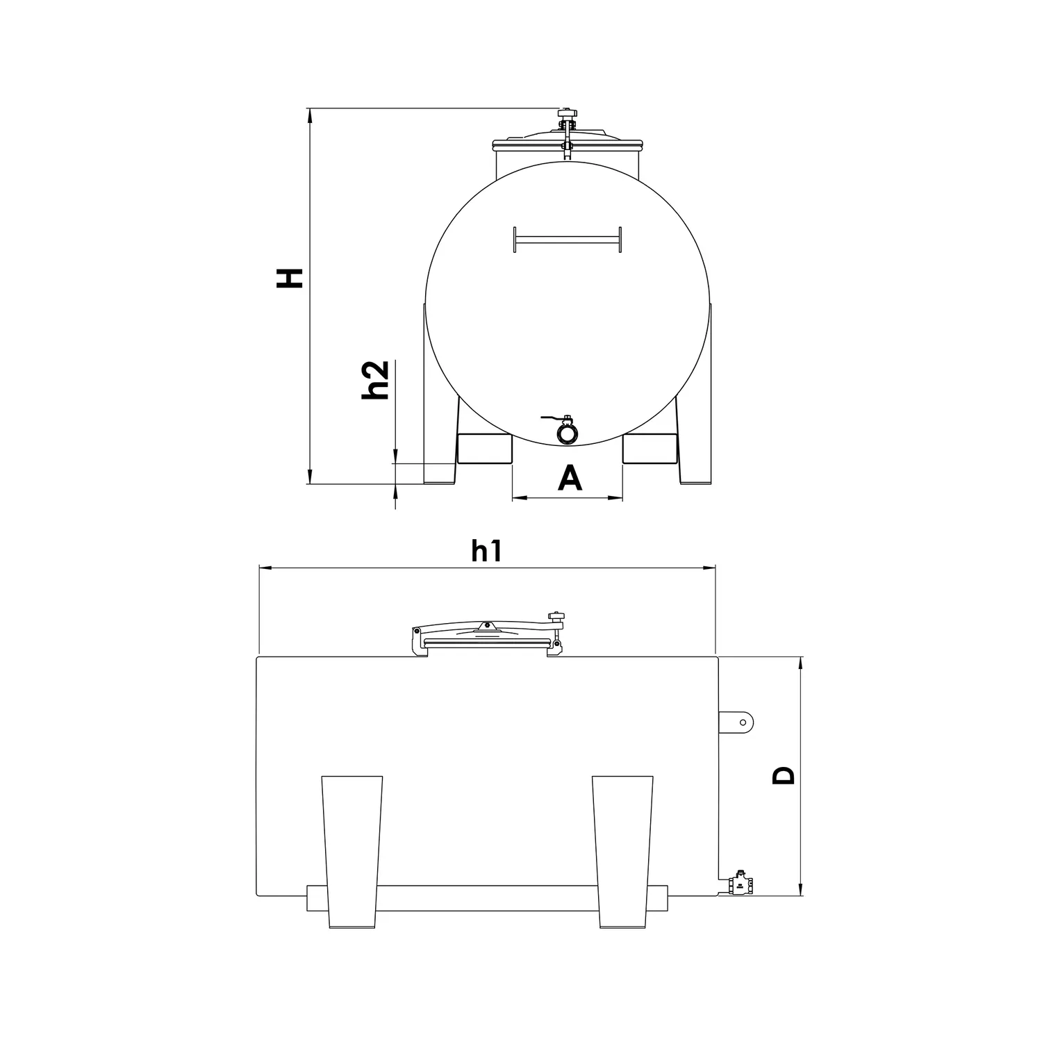 Tankarna är anpassade för att enkelt kunna flyttas runt och transporteras. Den svetsade basen gör det möjligt att transportera tanken med gaffeltruck eller pallyftare. Det svetsade underredet är tillverkat av rostfritt stål AISI304 och garanterar stabilitet, tillförlitlighet och säkerhet vid transport av tomma tankar. Observera att förflyttning endast ska ske när tanken är tom.