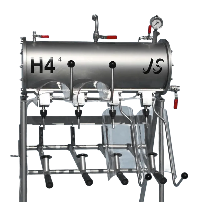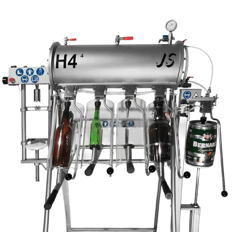 Fyllaren levereras med två till åtta fyllningsstationer för flaskor och är perfekt för den lilla producenten av cider, öl eller annan kolsyrad dryck som inte är i behov av en helautomatiserad fyllningslinje. Mottrycksfyllare H4 finns tillgänglig med en rad olika tillbehör och är möjlig att anpassa efter era specifika behov, kontakta oss om ni vill veta mer.