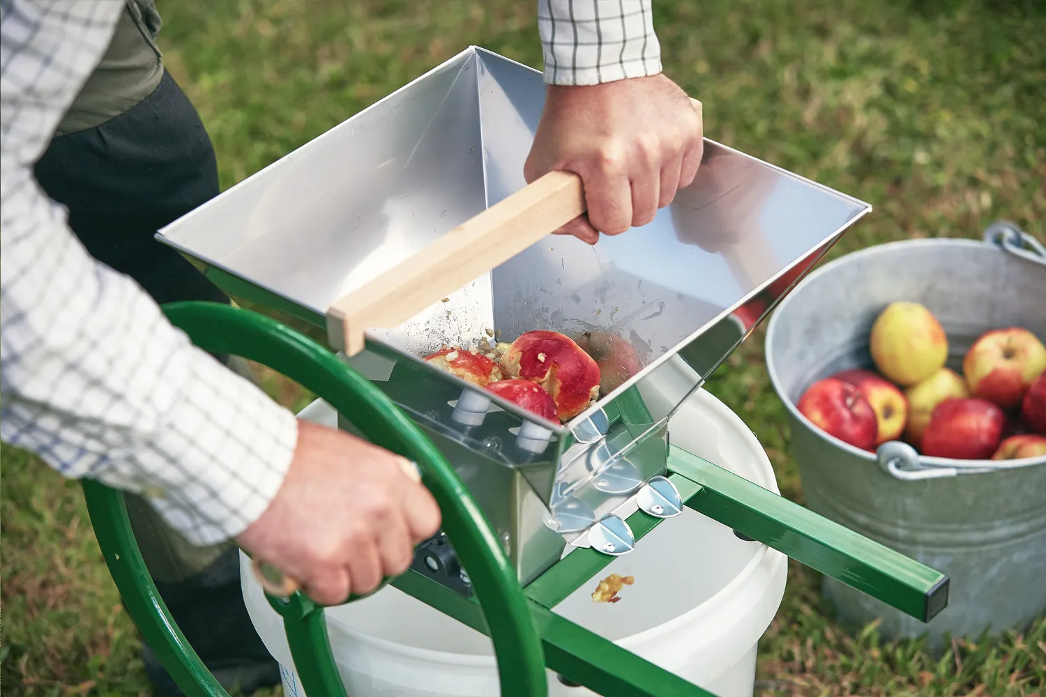 För att krossa äpplena kan man använda en ren spann och träkäpp och slå sönder äpplena, men det är en väldigt tidskrävande och dryg process. För att underlätta det arbetet har vi tagit fram väl anpassade fruktkrossar, gjorda för att krossa äpplen och annan frukt och för att skapa en så optimal fruktmassa som möjligt, för ett högt utbyte vid pressning. Våra krossar är enkla och smidiga att använda, och skapar en konsistens på fruktmassan som är lämplig för pressning.