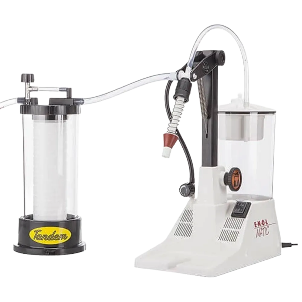 Enolmatic er en rask, robust og allsidig vakuumfyller som passer for det lille musteriet. Vakuumfylleren bruker en vakuumpumpe for å trekke væsken fra en ekstern beholder inn i flasken. Ettersom flasken fylles ved hjelp av et vakuum, gjør det fartøyet i stand til å med det ferdige settes musten lavere enn selve tappepunktet. Vakuumfylleren er veldig enkel å bruke og kan håndtere flere forskjellige typer flasker. Volumet som fylles i flasken bestemmes av dysen på selve fyllemaskinen, når riktig nivå er nådd, stoppes fyllingen av flasken automatisk.